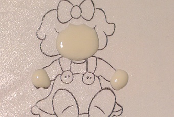 Vamos a usar glasa de relleno. Empezamos rellenando la cara y las manos.