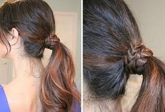 - Toma la trenza y enróllala en la coleta donde utilizaste la liga.
