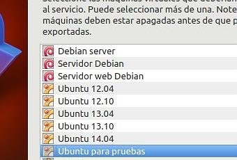 Supongamos que habéis creado una maquina virtual, habéis instalado Ubuntu en ella, habéis actualizado el sistema y también instalado las Guest Additions, ese es el mejor momento, antes de hacer cualquier otra cosa, para hacer la copia. Para ello abrimos el Virtual Box y en el menú “Archivo” del programa pinchamos sobre la opción que pone “Exportar servicio virtualizado” y veremos lo siguiente:
