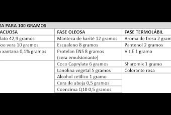 - Aroma de fresa (2%): No aporta propiedades cosméticas, pero se puede sustituir por aceites esenciales con beneficios, como el aceite esencial de limón, naranja o geranio.