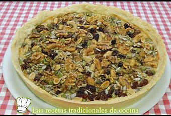Lo mas significativo son los fruto secos, que ya te adelanto que puedes usar los que prefieras, lo habitual es poner almendras, cacahuetes, nueces, avellanas, pero te aconsejo que también la pruebes con uvas pasas, orejones y otro tipo de frutas que te gusten.