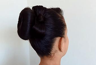 - Toma una dona o moño y pasa el cabello por en medio de la dona, sujétala bien a la cabeza utilizando pasadores.