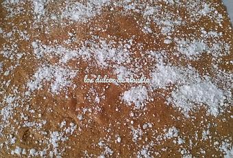 Forra un molde con papel vegetal, yo utilizo la bandeja de horno.Tamizar el harina, canela y polvo de hornear.