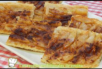 Bueno la elaboración como podrás en el vídeo es muy simple, primero prepara la masa y ya la dejas extendida sobre la bandeja, luego colocas las peras en láminas finas sobre la amasa, echa también el azúcar, el aceite y canela en polvo si te gusta, y al horno con ella.