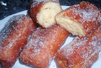 - Abrir los bollitos por la mitad y vaciar un poco de miga. Hacer la crema con la leche,el azúcar y el sobre de flan. Dejar cuajar hasta que enfríe la crema y rellenar con ella los bollitos, rebozar con los huevos batidos y freir en aceite bien caliente.