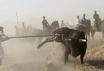 Fiesta de origen medieval cuyo ritual empieza con la suelta de un toro bravo cerca de la Plaza Mayor de la Villa. Varias personas montadas a caballo dirigen al toro hacia el campo hasta una zona en la que los vecinos le atacan con lanzas hasta acabar con la vida del animal.