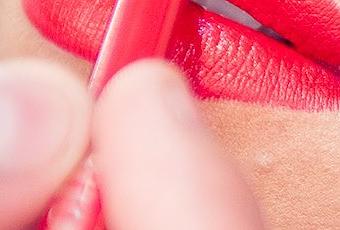 2) Elige tu rojo de todos los días. Empieza a aplicarlo desde el centro del labios hacia los laterales. Si tienes un perfilador que sea del mismo tono (o similar) que el labial, puedes colorearlos por completo y después aplicar el lápiz de labios encima. Conseguirás que dure muuuucho más. Si prefieres un acabado más sutil, aplica el rojo directamente sobre el labio con la yema del dedo, dando pequeños toquecitos.