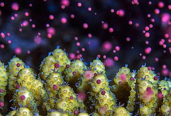 Algunas especies de coral sueltan paquetes de un color rosáceo violáceo, otras los sueltan amarillos, verdes, blancos o de otras tonalidades. “Es una sensación estética muy agradable”, afirma Shlesinger, ecólogo marino de la Universidad de Tel Aviv y del Instituto Interuniversitario de Ciencias Marinas de Eilat, Israel, que ha presenciado el espectáculo durante muchos años de buceo. Los corales suelen desovar al atardecer y por la noche, dentro de un estrecho margen temporal de 10 minutos a media hora. “La sincronización es tan precisa que se puede ajustar el reloj a la hora en que ocurre”, afirma Shlesinger.