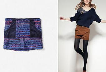 No te ciegues con los colorines. Aunque la falda tenga azulón, podemos vestirla perfectamente con negro. Es más, para los salones en ante no cabe otra media y otro color de zapato que no sea el negro.