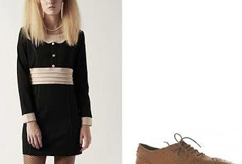 - Para ser una moderna niña buena: con cuñas peep-toe, exageradas, en tostado, y medias marrón chocolate. Y cazadora de piel estilo biker.