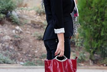 Buenos días seguidores,os acordáis de los botines rojos de Kickers que os enseñaba hace unos días?? pues ya ha llegado el día de estrenarlos y como tenía que ir a la oficina, opté por ponérmelos con un look más o menos formal.Para este día de trabajo elegí unos pitillos negros con camiseta básica blanca y americana negra. Como complementos el foulard, regalo de un amigo, y bolso vintage.