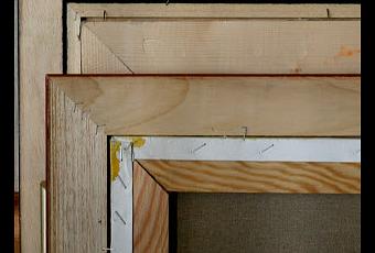 Para este tipo de bastidor una buena solución que cubra las grapas es montar un marco simple a 90º.