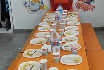 La merienda típica infantil para los cumpleaños se basa en Sándwiches, patatuelas, tarta… Hay quien la hace más saludable: con tortilla de patata, algún untable, croquetas… o un mix. Si se quedan los padres en el cumple, es mejor hacer un mix, y que sobre para que los padres puedan comer algo más.