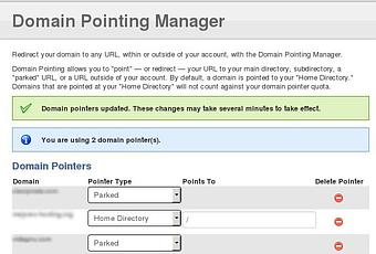 - Verás todos los dominios que tienes disponible en tu cuenta, solo basta con seleccionar en la opción Pointer Type contiguo al dominio que quieres Parquear, seleccionas Parked y haces clic en el botón Change Settings y Listo.