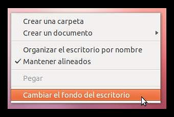 Este es el ultimo articulo del Tema 1 del curso de Ubuntu en el cual estoy tratando tanto la pantalla de Login como el escritorio para usuarios recién llegados al mundo de Linux y Ubuntu. En este articulo voy a tratar la personalización del escritorio a nivel básico, es decir, cambiar el tamaño del Launcher o lanzador, cambiar el fondo de escritorio y el tema de ventanas. Vamos con lo primero y eso va a ser cambiar el fondo de escritorio. Una vez tengamos encendido el ordenador sobre una parte libre del escritorio hacemos click con el botón derecho del ratón y seleccionamos la opción que esta resaltada en la imagen: