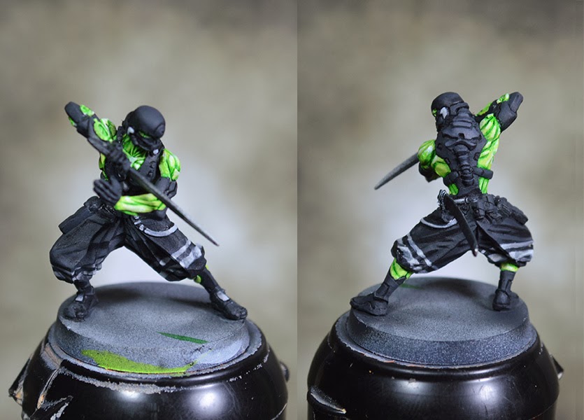 Así que vamos a empezar con el Oniwaban. Como estoy empezando con esto de Infinity mi criterio a la hora de elegir una mini depende de lo molona que sea, y personalmente esta mini está muy chula. Por otro lado el trabajo de Ángel Giráldez me parece perfecto y no me distanciaré mucho de el, pero lo que si voy a hacer es darle un toque en la peana que realce más a la miniatura y que no quede tan sosaina.