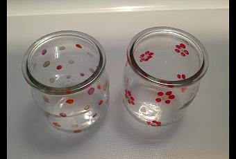 Como veis, no me he gastado mucho dinero en esta manualidad. Los vasos son envases de cristal de yogures. Los encontraréis de varias marcas en cualquier supermercado.