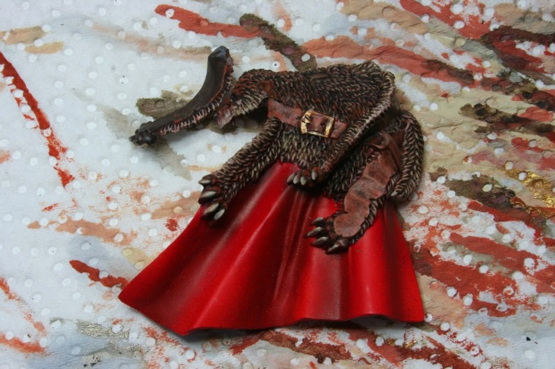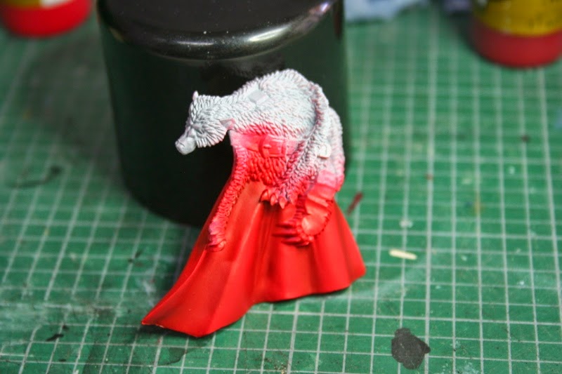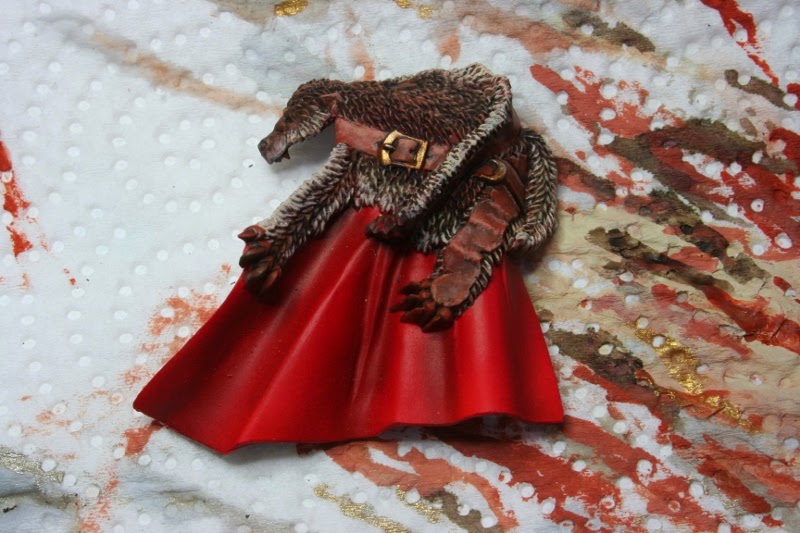 La piel del lobo que cubre la capa la he pintado con Vermin Brown, Rhinos Hide de Games Workshop.