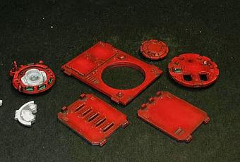 Después he aprovechado a pintar todos los bordes del Razorback con Gris Lobo de Vallejo Game Color los grises y con Rojo Fluorescente de Vallejo Model Air.