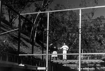 Cuando hablamos de estructura no puedo evitar hablar sobre las casas estudio. En la imagen vemos a Charles y Ray Eames subidos a una de las vigas que componen lo que sería su propia casa estudio, la nº8.