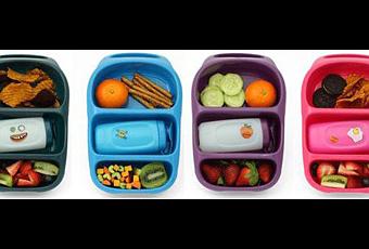 Podemos optar por tuppers que estén divididos en diferentes áreas, para que sean fáciles de transportar al colegio y a la vez nos asegurarnos de que los niñ@s no olvidan comer algún plato. Además son los que más se asemejan a los que sirven en los comedores escolares y así ya están familiarizados con ellos.