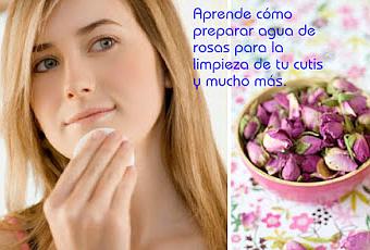Necesitaremos: Pétalos de rosas (de preferencia rosas rojas o rosas) ½ kg Agua destilada de uso físico ½ lt Recipiente de vidrio para guardar el agua de rosas 1 unidad Preparación 1.- En un recipiente colocamos el agua destilada junto con el ½ kg de pétalos de rosas. 2.- Llevamos el recipiente al fuego mediano o alto. 3.- ¡Importante! Una vez que comienza a hervir, baja el fuego a mínimo. Tapa el recipiente y déjalo en el fuego suave por 10 minutos más. 4.- Pasado este tiempo apaga el fuego. Deja tapado el recipiente por unas 3 o 4 horas hasta que se enfríe. 5.- Filtra el agua de rosas con un filtro de papel o de tela de modo que sólo vayamos a utilizar el agua de rosas. 6Vierte el agua de rosas en una botella de vidrio con tapa y guarda en un lugar fresco y seco. Puedes guardarla en la nevera si quieres. Deja que el agua de rosas repose en el frasco o botella de vidrio durante 24 hs y luego puedes utilizarla como lo haces habitualmente.
