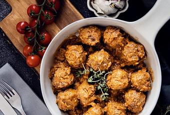 - Añadimos las albóndigas horneadas, las mezclamos con la salsa un poco y llevamos a fuego medio hasta que la salsa espese. unos 10 minutos.