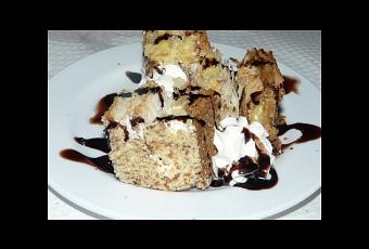 En una placa de horno previamente untada con mantequilla, vertemos la mezcla. Podemos al horno durante unos 15 minutos a 180 ºC. Una vez cuajado, cortamos en cuadrados.