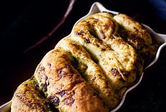 Receta para preparar Pan Enrollado de Pesto de Calabacín. Pan estilo brioche Relleno de Pesto. Suave esponjoso
