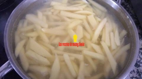 Ponemos una cacerola con agua y cuando este hirviendo incorporamos las patatas