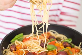 A mi me gusta terminarla con unas aceitunas enteras, con albahaca y algún tomate cherry para darle más textura a la salsa. Queda deliciosa!