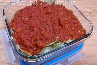 Por último, añadir el bote de tomate concentrado y el bote de tomate triturado y cocinar a fuego medio durante unos 10- 15 minutos. NOTA: Cuando añadamos el tomate pondremos una pizca de sal y una pizca de azúcar para eliminar la acidez del tomate.