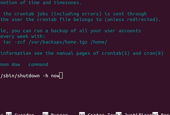 guardamos el archivo (con nano se cierra y guarda con Ctrl+x) y listo. A los cero minutos de las 23 horas se apagará la PC.