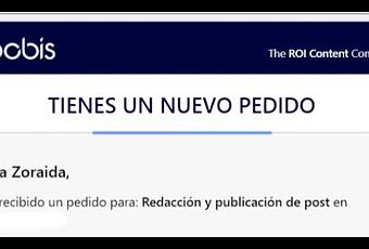 Aquí podéis ver el estado del pedido: Debería poner Pedido Nuevo.(Donde pone solicitado)La marca que os pide el encargo: Lo he borrado por discrección.En Recursos: Se refiere a donde quieren que publiques el trabajo.Fecha Límite: Era la fecha para aceptar el encargo.Precio: Lo que os pagan a vosotros ya descontado lo que se lleva Coobis.