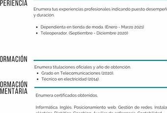 El gran número de candidaturas que se presentan a las distintas ofertas de empleo, la complejidad de los procesos de selección y las limitaciones del mercado laboral han tenido como consecuencia que se fomente los currículums breves, claros y concisos que permitan conocer la información necesaria para conocer el perfil de la persona interesada en ser contratada. En ocasiones, no es sencillo resumir en una página toda una vida laboral, por lo que te comparto un ejemplo, por si pudiera serte de ayuda.