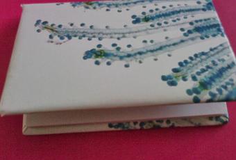 Todos los años me hago con una nueva agenda anual en diciembre, pero este año he andado un poco tarde y no he podido conseguir una hasta enero, bastante fea como podéis comprobar en la foto.Así que después de reciclar mi vieja compañera del 2013, he decidido "arreglar" y personalizar un poco mi nueva agenda. Os cuento cómo lo he hecho.1)He elegido una fotografía grande de revista que me gustara. Servirá de forro. En este caso la fotografía elegida es de la revista National Geografic, una fotografía de microfauna, al parecer son larvas de pez volador...2)Forro las tapas con cuidado, especialmente en las esquinas y pego la fotografía con celo.