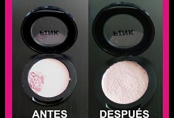 Una vez esta bien deshecho el polvo, vamos a agregar unas gotas de alcohol para humedecer todo el maquillaje.