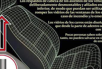 Siguiendo con el tipo de consejos con que iniciábamos la semana, muchos son los que desconocen esta característica del respaldo de cabeza de los asientos, la de tener un extremo que acaba en punta, una punta que servirá para romper el cristal de las ventanas en caso de incendio, inmersión, u otras emergencias.