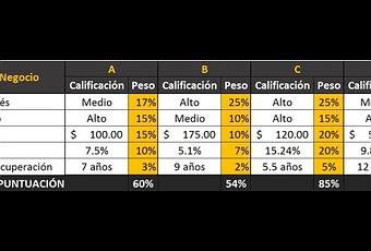 Es importante resaltar que este modelo parte de lo arbitrario, es decir, tienes que darle a cada uno de los renglones el peso que entiendas. Ya que para algunas personas el capital es lo más importante, y para otras el conocimiento es lo que debe tener un mayor peso.
