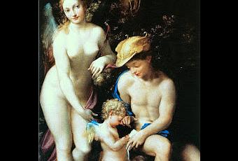 ¿Qué llevó al pintor del Renacimiento italiano Antonio de Correggio (1489-1534) a componer una obra expresando ahora la educación del dios del Amor, de Cupido? Esta leyenda no existía en la Mitología de la Antigüedad, no se había conocido ninguna leyenda griega ni romana que contara que Venus -su madre- y Hermes -un dios dado a la retórica- se pusieran a educar al dios desaforado de la unión amorosa entre los seres. Al parecer, tampoco pintor alguno antes de Correggio se le ocurrió nada parecido, aunque sí después de él. ¿Entonces, por qué lo hizo? Fue el Renacimiento. No me refiero a esta tendencia pictórica solamente, no, me refiero a que en aquellos años renacentistas los escritores, pensadores y filósofos neoplatónicos desarrollaron ya una idea de las cosas del mundo y de la vida de los hombres basada parte en la Mitología. No sólo se generó la más grande revolución en el Arte de pintar, sino que, además, se alcanzaría una forma diferente de entender el mundo.