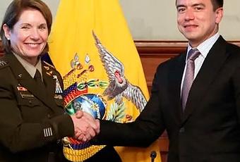 Allí mismo se refiere como la visita de Laura J. Richardson del Comando Sur (foto, con Noboa) y una comitiva de altísimo nivel al país en septiembre de 2022 fue la que «allanó el camino». De allí en adelante «el equipo estadounidense en el país decidió redoblar sus esfuerzos para conseguir un Acuerdo sobre el Estatuto de las Fuerzas». A la cabeza de esto habría estado el Embajador Michael J. Fitzpatrick, quien ya se venía comportando como auténtico proconsul, por sus reiteradas declaraciones injerencistas sobre la política local: tanto la sección política (¿La CIA?) como la Oficina de Cooperación en Seguridad (OSC) de la Embajada «colaboraron estrechamente para organizar sesiones de negociación entre un equipo interinstitucional»: el Departamento de Estado de los EEUU y los ministerios ecuatorianos de Relaciones Exteriores y de Defensa. Algo que también resulta revelador es la confirmación de que hubo funcionarios del Ministerio de Defensa del Ecuador que «se opusieron inicialmente a la falta de reciprocidad del SOFA», pero que los cuestionamientos fueron superados con el «compromiso público del ministro de defensa [¿Gral.Luis Lara Jaramillo?] que invalidara las objeciones de su personal».