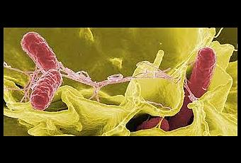 Este señor decía que cuando comemos un alimento ya infectado de salmonela, esta se mete en la superficie del tejido intestinal. Es una especie de misión suicida ya que la presencia de la bacteria, al igual que sucede con cualquier otra bacteria, rápidamente va a provocar que los anticuerpos intenten matarla. Sin embargo la salmonelosis aprovecha ese mecanismo defensivo a su favor.
