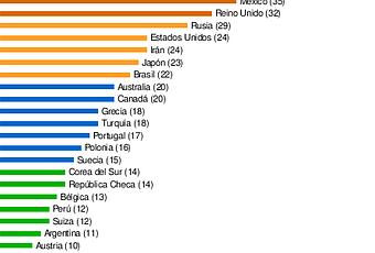 Los países con un mayor número de bienes considerados Patrimonio de la Humanidad son Italia y China, seguidos de España, Alemania, Francia, India y México. Casi un 50% se encuentra en Europa y América del Norte. Sin embargo, si se trata de países con mayor número de zonas declaradas Patrimonio Mundial en peligro —aquellos monumentos declarados patrimonio de la humanidad pero que corren un grave riesgo, ya sea por catástrofes naturales, conflictos bélicos o cualquier otro motivo—, las cifras cambian: el 40% se encuentra en la región árabe y el 30% en África.