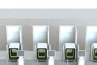 El diseño incorpora ocho cabinas de proyección en el mismo espacio que los carriles unilineales actuales, lo que significa que si un usuario se demora o activa las alarmas, otros viajeros aún pueden pasar por las cabinas restantes.