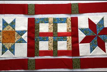 Pues ahora toca elegir tela para las uniones y unir los bloques.