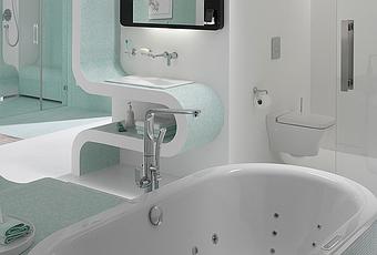 Otro tema importante tiene que ver con la salud, lo que empleando un término anglosajón se conoce como “Healthness“. El baño debe cumplir con todas y cada una de las funciones para las que ha sido creado, pero debe centrarse sobre todo en ser como un pequeño centro de salud. Queda claro que nunca podrá ser como el spa de un hotel, pero en la medida de lo posible hay que instalar todos los sistemas y todas las soluciones que permitan alcanzar el bienestar físico y mental.Proponen integrar biocaptores para medir los datos corporales y vitales. Es más, dentro de 20 años todo el mundo da por hecho que en el baño habrá una especie de programa de fitness individual muy fácil de utilizar. Contará con un entrenador virtual e infografías para tener mucho más claro qué es lo que hay que hacer en cada momento.