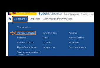 Una vez dentro clicaremos en "Ciudadanos" e "informes y certificados"