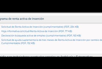 Paso 1: Acceder al listado de solicitudes desde aquí y pinchar en el campo "solicitud de renta activa de inserción".