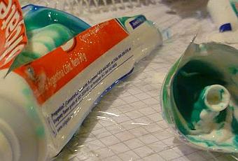 Muchos especulan que los pomos podrían tener tres compartimientos diferentes, o bien una bolsa interna con algunas tuberías que reparten los colores equitativamente. Y si no fuese tan complejo como sospechamos, ¿cómo logra mantener la uniformidad de colores casi hasta el final? Aunque también es cierto que el final de un pomo de pasta dentífrica es algo metafórico, porque todos sabemos que la cantidad que cabe adentro si bien tiende a cero, no se termina nunca.
