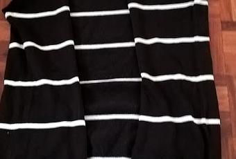 Y y tendríamos nuestro chaleco abierto. Para "rizar" las costuras, basta con estirar un poco. Este chaleco de rayas, es todo un básico de entretiempo. ¿Te gusta? ¿Te animas a reciclar tus viejos jerseys?